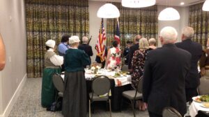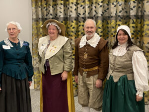 Fay spoke with the assistance of her oldest child, Bill Alexander, about the motive and research of her historical novel One Candle’s Light. Many delightful folks were dressed for the part of their own ancestor or a favorite Mayflower Pilgrim.